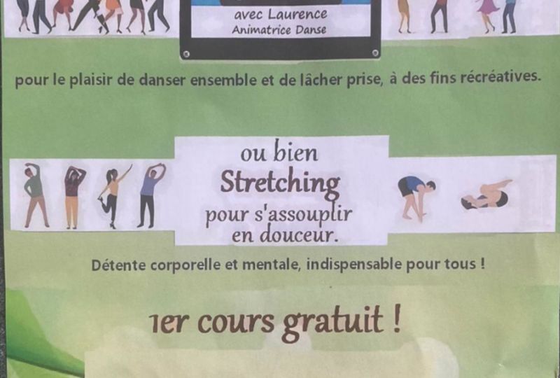 A partir du 16 septembre 2025, Laurence anime des séances de stretching de 18h à 19h et de danse de 19h à 20h Venez vous détendre !