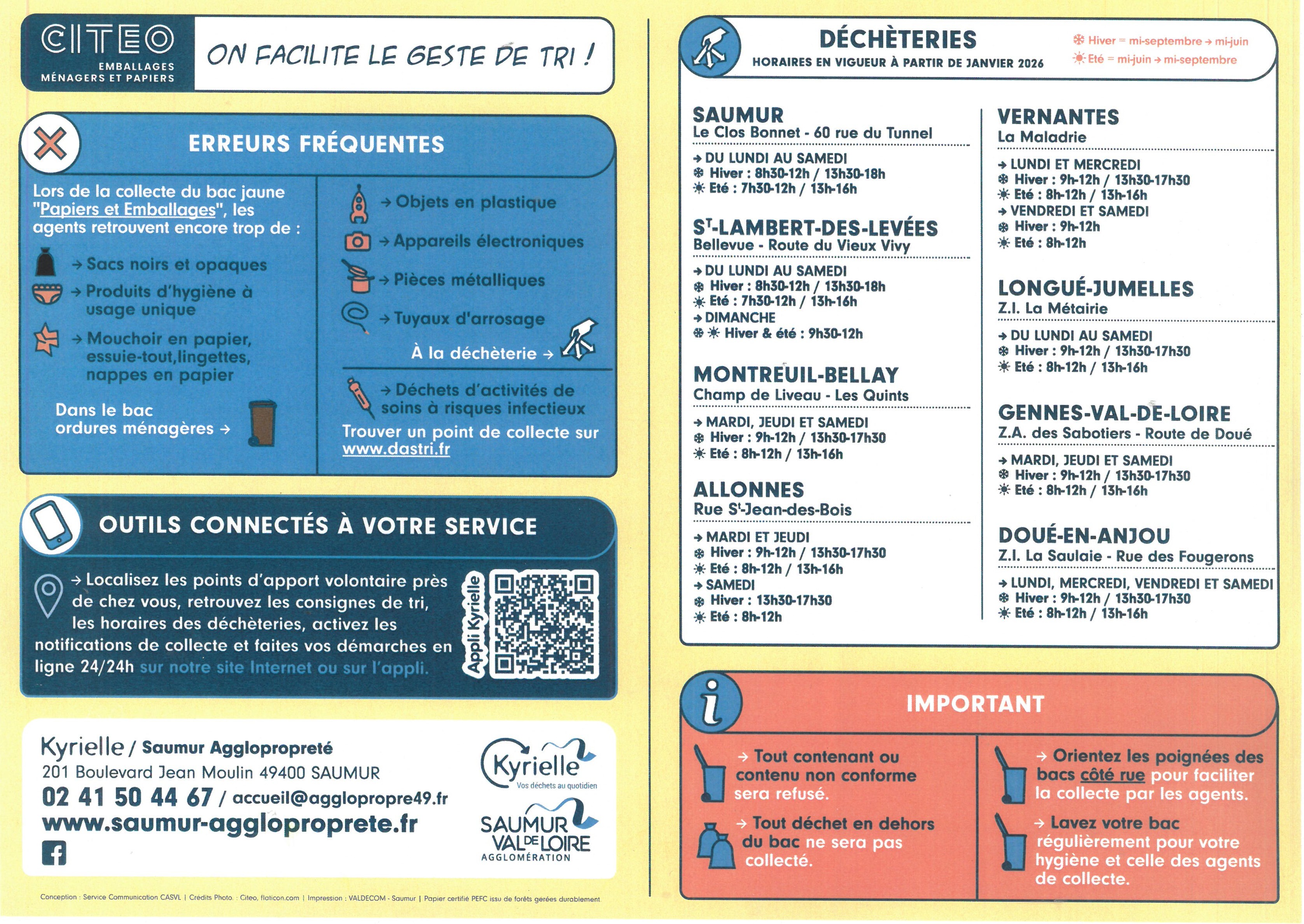 C'est le service Saumur Agglo Propreté (Kyrielle) qui est responsble de la gestion et du rammassage des déchets ménagers sur le territoire de la commune et sur le territoire de l'Agglo Saumur.
